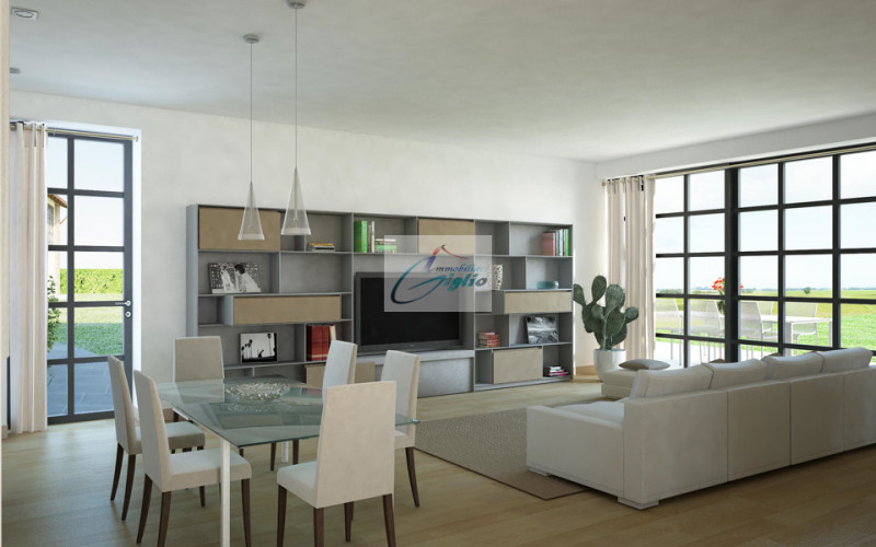 Ingresso, zono giorno con soggiorno e pranzo con porta finestra che da sul porticato e giardino, camera matrimoniale, disimpegno, bagno finestrato, garage e posto auto di proprietà.